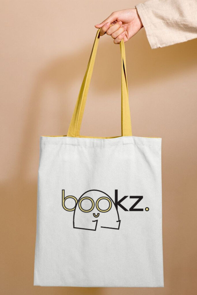 pop of color: the beige/yellow color is connected to the yellowing of pages showcasing the longevity of bookz.